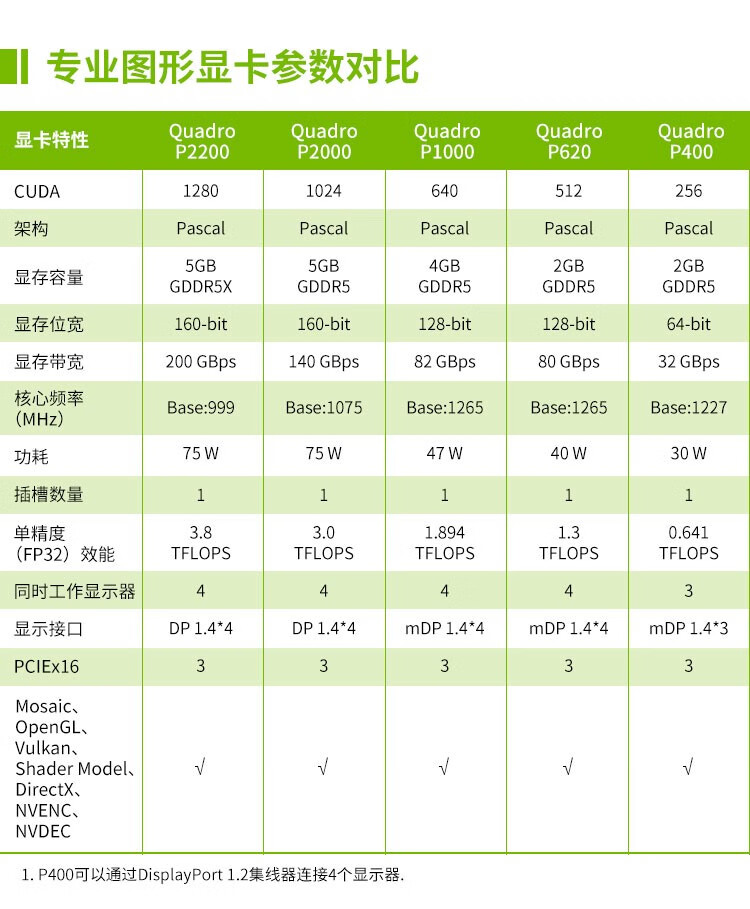 丽台(LEADTEK)NVIDIAQuadroP400P10